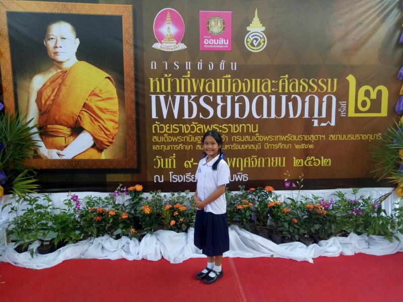 เด็กหญิงภวรัชญ์ ขวัญสุด ได้รับเกียรติบัตร ผ่านเกณฑ์ในการสอบ แข่งขันหน้าที่พลเมืองเพชรยอดมงกุฎครั้งที่ 2