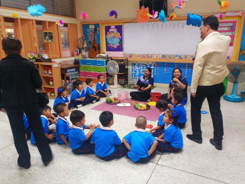 คณะครูโรงเรียนสุเหร่าคลองหนึ่ง มาศึกษาดูงาน การเรียนการสอนสายชั้นอนุบาล ผอ.อภิชัย จันทร์เทศให้การต้อนรับและพาชมการเรียนการสอนของอนุบาล คันนายาว