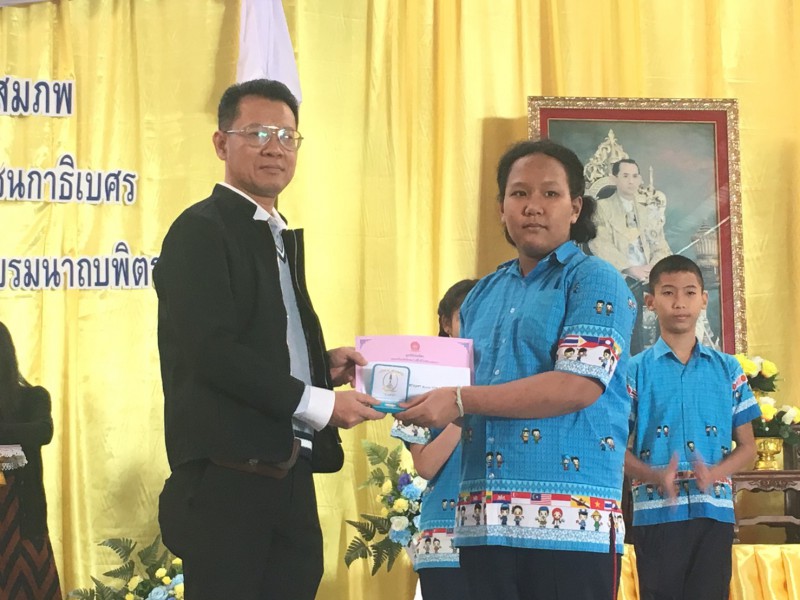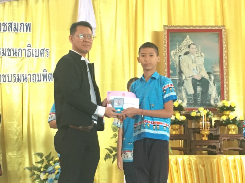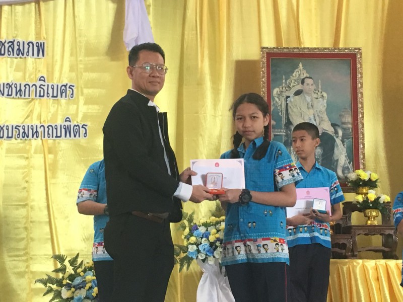 นายอภิชัย จันทร์เทศ ผอ.โรงเรียนคันนายาว(ธารินเจริญสงเคราะห์) มอบเกียรติบัตรและเหรียญรางวัลชมเชย ให้แก่ เด็กหญิงณัฏฐนิช ละอองทอง เด็กชายกฤตนัย ซุยรัมย์ เด็กหญิงชัชฎา สีหอม และรางวัลอื่นๆ
