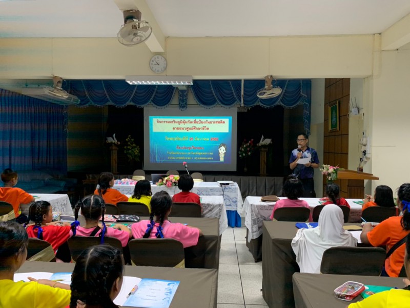 อบรมกิจกรรมเสริมภูมิคุ้มกันเพื่อป้องกันยาเสพติดตามแนวศูนย์การศึกษาชีวิต นักเรียนชั้นป.4