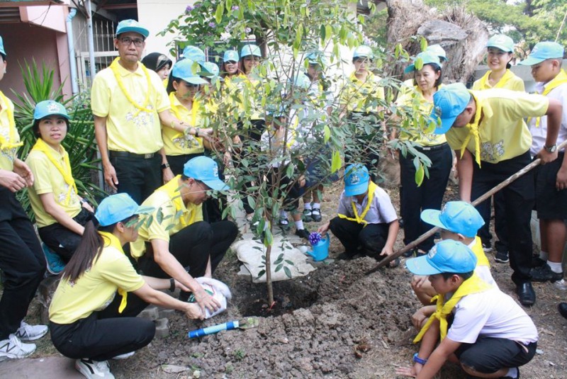 และปลูต้นไม้เฉลิมพระเกียรติ เนื่องใน วโรกาส พระราชพิธีบรมราชาภิเษก ณ โรงเรียนคันนายาว(ธารินเจริญสงเคราะห์)