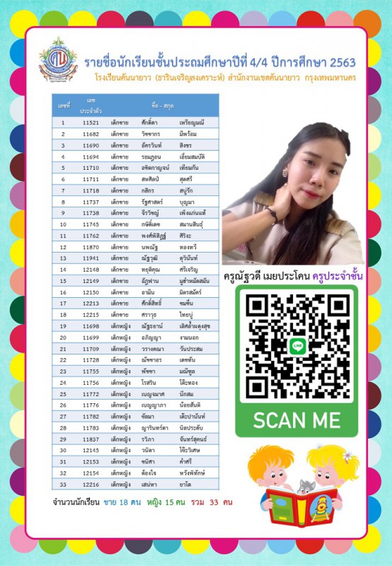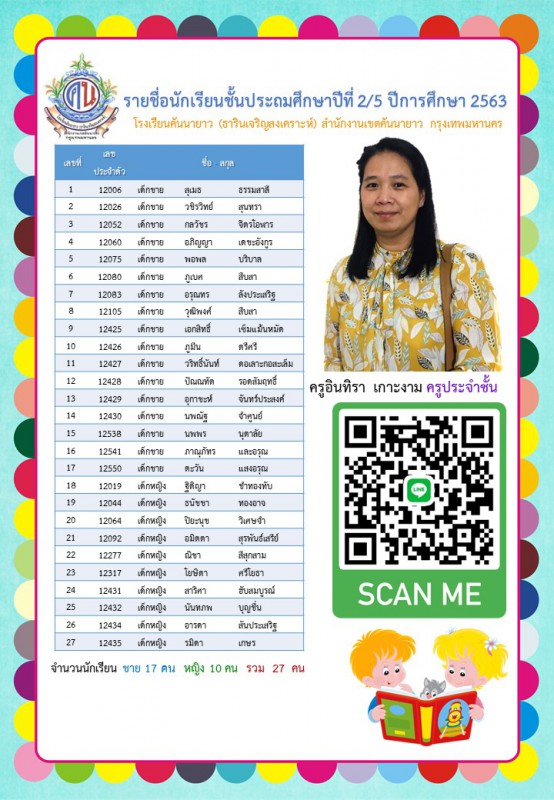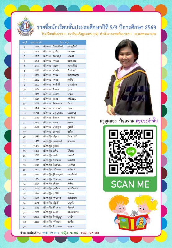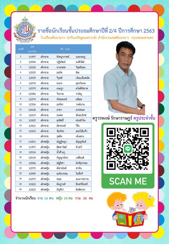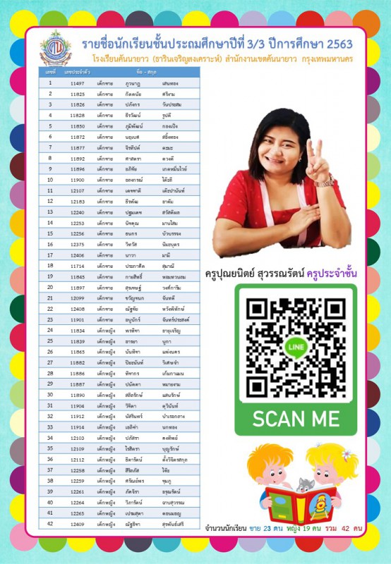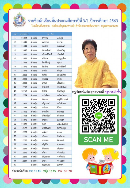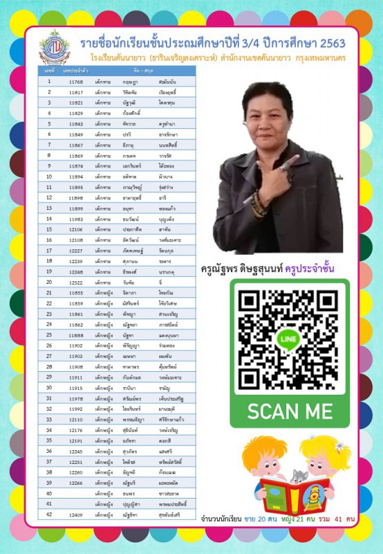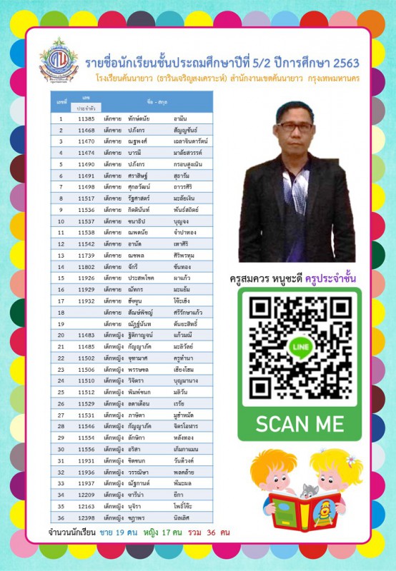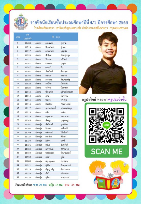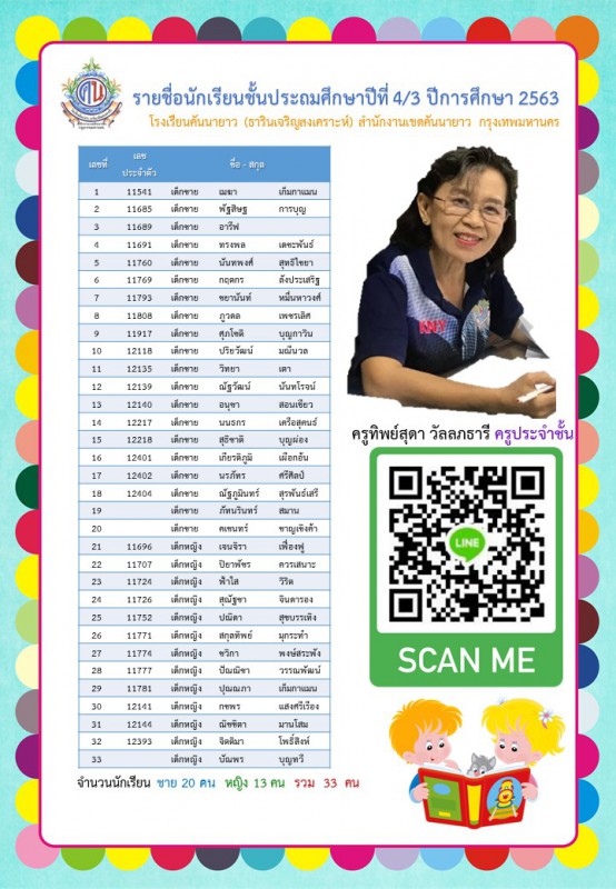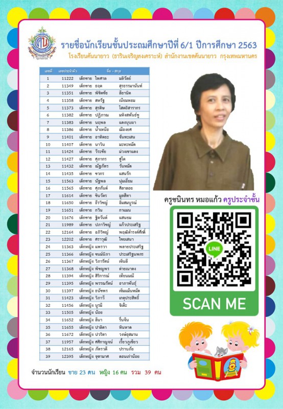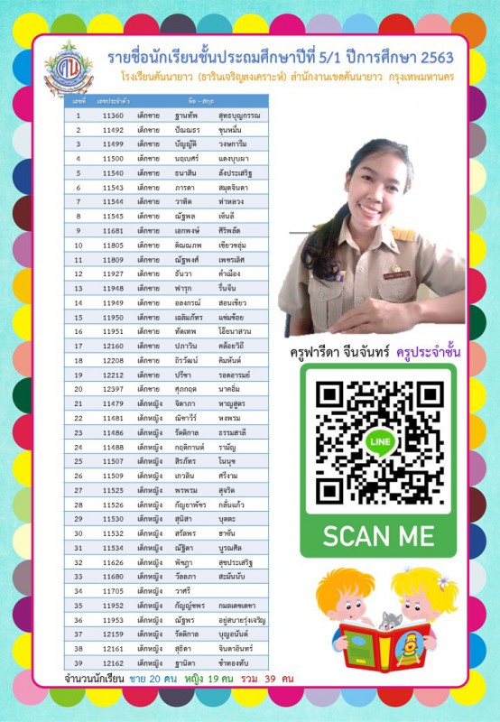 เพื่อเข้าร่วมกลุ่มไลน์ห้องเรียนที่นักเรียนประจำชั้นอยู่ในปีการศึกษา 2563 เพื่อใช้ประสานงานกับครูประจำชั้นในการเรียนการสอนผ่านระบบออนไลน์