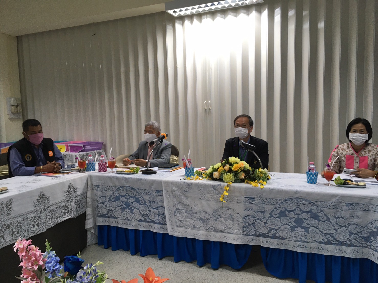 ในการ นายโฆสิต ธรรมโฆสิต หัวหน้าฝ่ายการศึกษา นายอภิชัย จันทร์เทศ ผู้อำนวยการ นายอุดมศักดิ์ ศรีระชาติ และนายณัฐพงศ์ เพชรฤทธิ์ รองผู้อำนวยการสถานศึกษา ให้การต้อนรับและรายงาน การเตรียมความพร้อมในการจัดการเรียนการสอนระยะที่1 และระยะที่2
