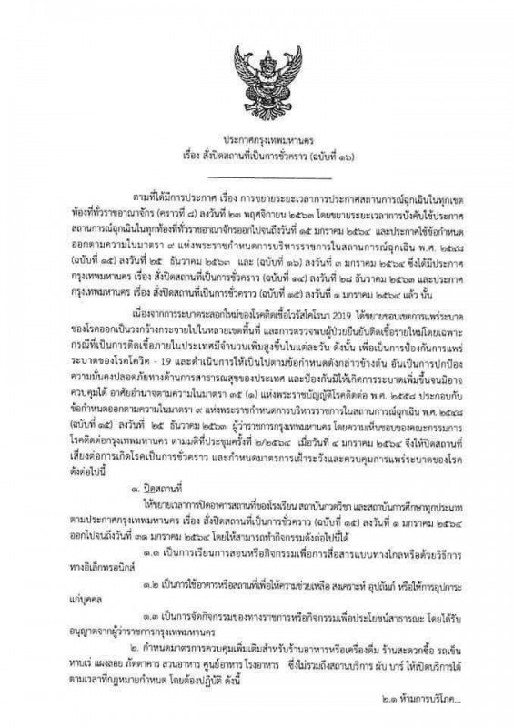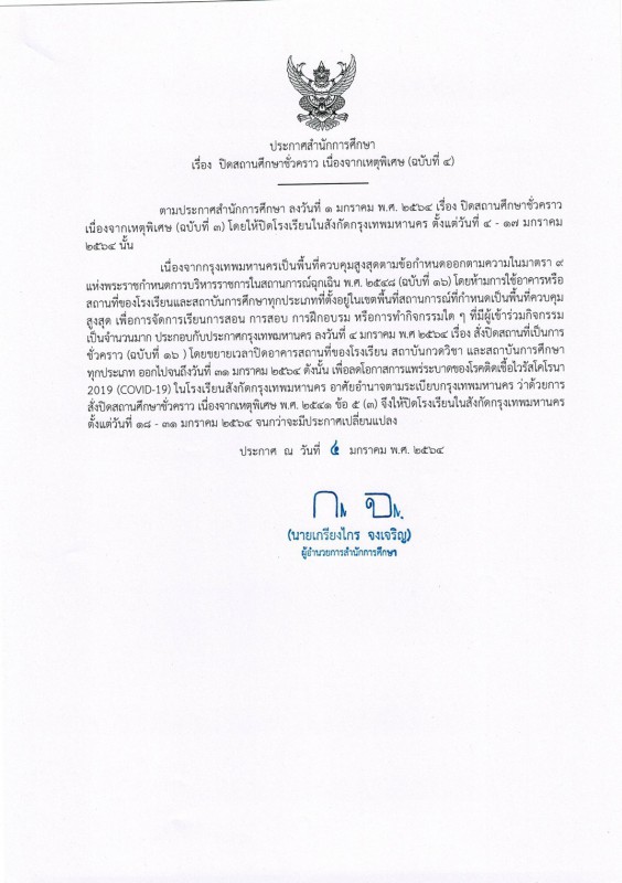 ประกาศเลื่อน เปิดเรียน วันที่ 1 กุมภาพันธ์ 2564