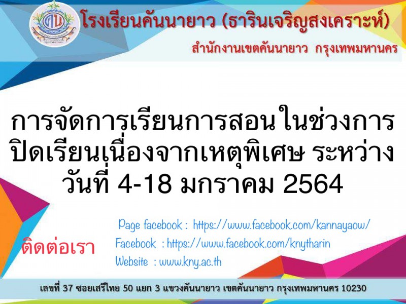 การจัดการเรียนการสอน ช่วงการปิดเรียนเนื่องจากเหตุพิเศษ ระหว่างวันที่ 4-18 มกราคม 2564