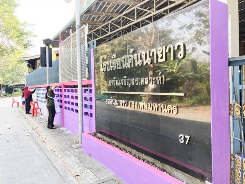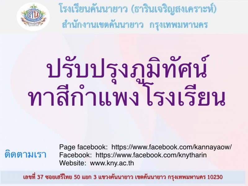 โรงเรียนคันนายาว (ธารินเจริญสงเคราะห์) โดย มี นายชัยยนต์ เสรีเรืองยุทธ ผู้อำนวยการสถานศึกษา พร้อมด้วยรองผู้อำนวยการสถานศึกษา คณะครู และพนักงานสถานที่ ร่วมกันทาสีผนังกำแพงโรงเรียนคันนายาว(ธารินเจริญสงเคราะห์)