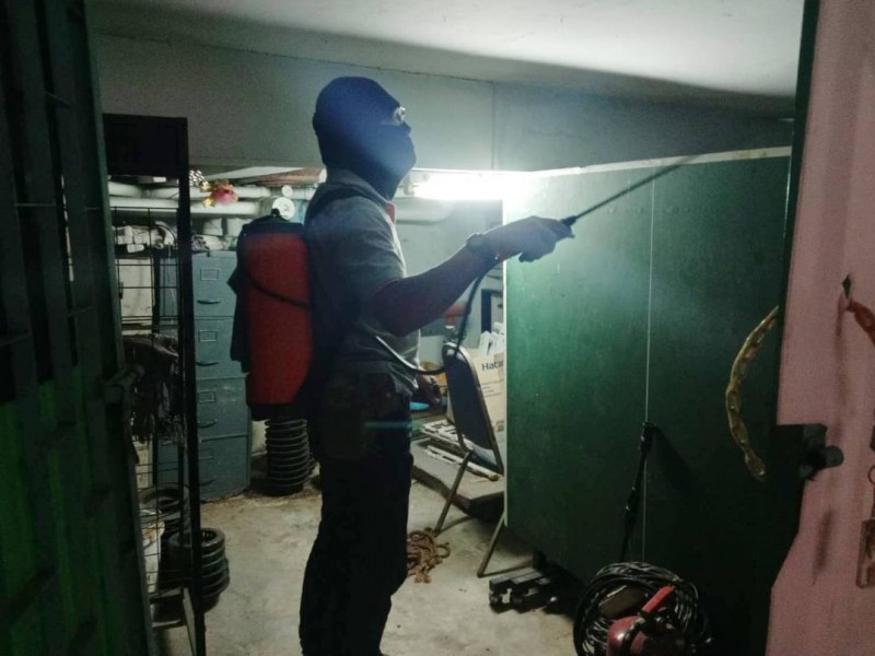 เจ้าหน้าที่ฝ่ายสิ่งแวดล้อมและสุขาภิบาล ดำเนินการฉีดพ่นกำจัดปลวก และแมลง