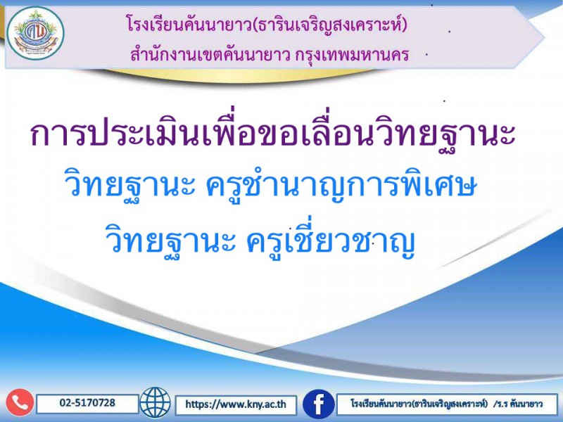นายชัยยนต์ เสรีเรืองยุทธ ผู้อำนวยการสถานศึกษาโรงเรียนคันนายาว (ธารินเจริญสงเคราะห์) เป็นประธานกรรมการการประเมินข้าราชการครูและบุคลากรทางการศึกษากรุงเทพมหานคร เพื่อขอมีหรือเลื่อนวิทยฐานะชำนาญการพิเศษ จำนวน 3 ราย วิทยฐานะเชี่ยวชาญ จำนวน 1 ราย โดยมีนางพรทิพ โชคถาวร ศึกษานิเทศก์ สำนักการศึกษากรุงเทพมหานคร นายโฆษิต ธรรมโฆษิต หัวหน้าฝ่ายการศึกษา สำนักงานเขตคันนายาว และนางณัฐชานันท์ มีผลกิจจารุกร ผู้อำนวยการสถานศึกษาโรงเรียนจินดาบำรุง ร่วมเป็นคณะกรรมการในการประเมินครั้งนี้ ณ ห้องประชุมไทรงามโรงเรียนคันนายาว (ธารินเจริญสงเคราะห์) สำนักงานเขตคันนายาว กรุงเทพมหานคร