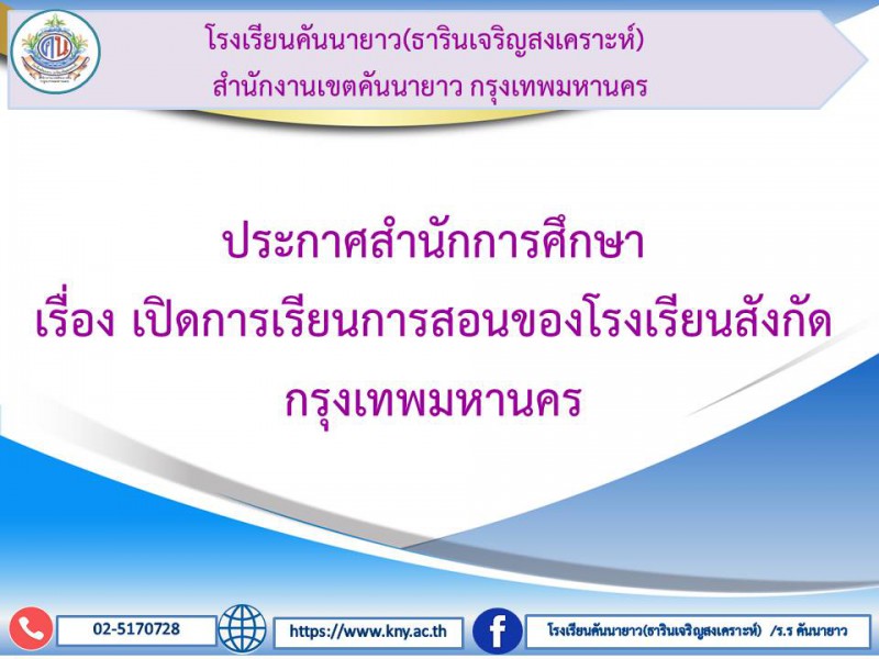 วันที่ 28 มกราคม 2564 โรงเรียนคันนายาว(ธารินเจริญสงเคราะห์) ขอประชาสัมพันธ์ การเปิดเรียนตาม ประกาศสำนักการศึกษา