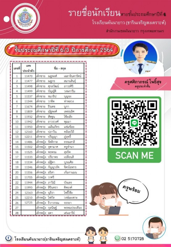 ตรวจสอบรายชื่อ และสแกน QR CODE เข้ากลุ่มห้องเรียน ภาคเรียนที่ 1 ปีการศึกษา 2564