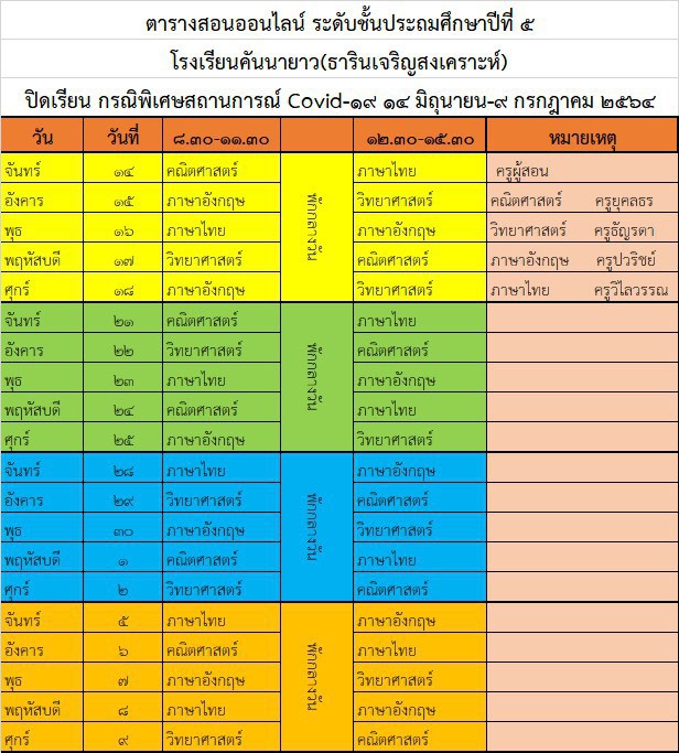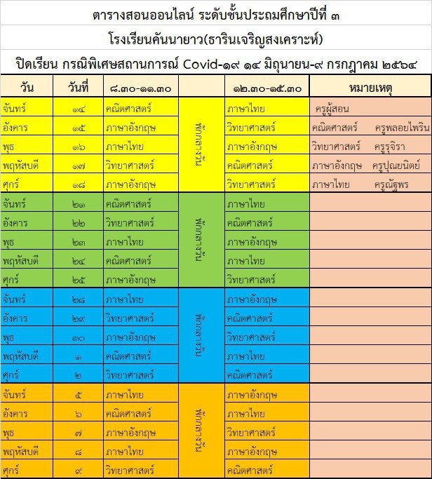 ประกาศโรงเรียนคันนายาว(ธารินเจริญสงเคราะห์) ตารางออนไลน์