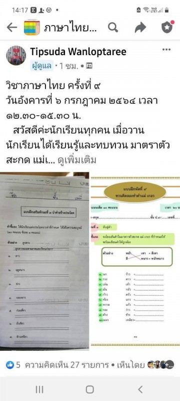>>การจัดการเรียนการสอนในช่วงการเปิดเรียนเนื่องจากเหตุพิเศษ ในสถานการณ์การแพร่ระบาดของไวรัสโคโรนา (Covid-19) สัปดาห์ที่ 4 ระหว่างวันที่ 5 - 9 กรกฎาคม 2564