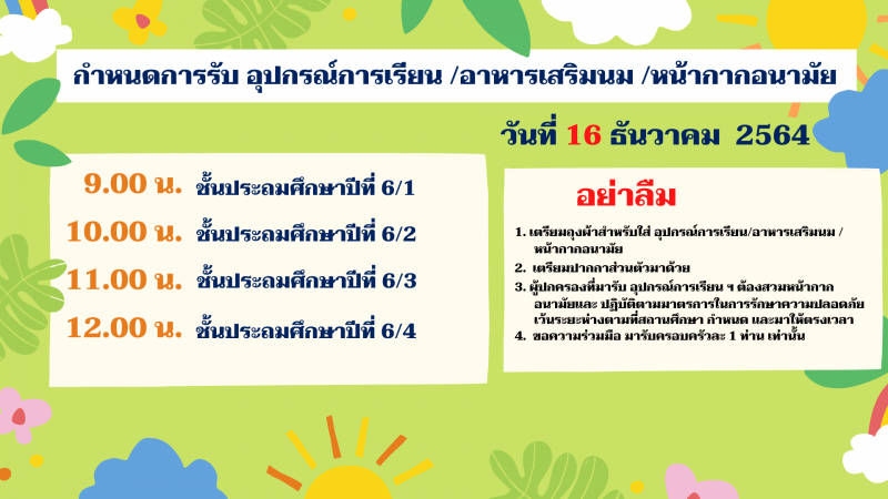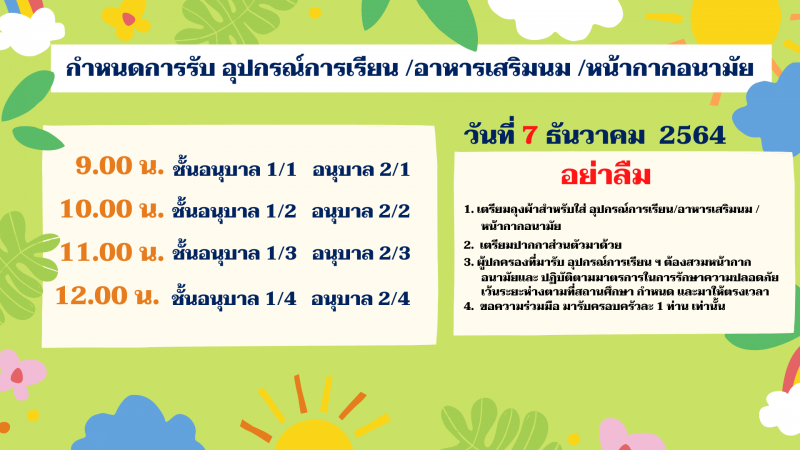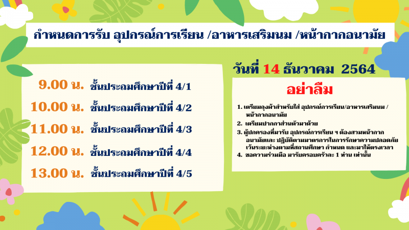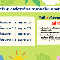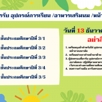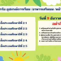 กำหนดการรับอุปกรณ์การเรียน/อาหารเสริมนม/หน้ากากอนามัย