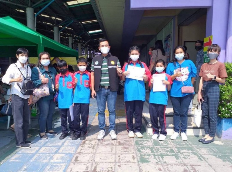 นายชัยยนต์ เสรีเรืองยุทธ ผู้อำนวยการสถานศึกษาโรงเรียนคันนายาว(ธารินเจริญสงเคราะห์) พร้อมด้วยคณะครู และผู้ปกครองนำนักเรียนระดับชั้นประถมศึกษาปีที่ 4-6 ที่มีอายุ 12 ปีขึ้นไป เข้ารับการฉีดวัคซีนไฟเซอร์ (Pfizer) เข็มที่ 1 ณ โรงเรียนวัดคู้บอน (วัฒนานันท์อุทิศ) เขตคลองสามวา กรุงเทพมหานคร
