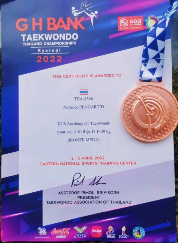 >>ร่วมแสดงความยินดีกับเด็กหญิงณัฐสินี เพ็งอาทิตย์ ได้รับรางวัลเหรียญทองแดง การแข่งขันรายการ TAKEWONDO THAILAND CHAPIONSHIPS 2022
