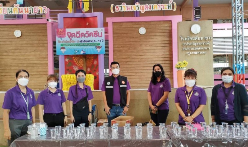 ในการนี้ นายกรณิศ บัวจันทร์ ผู้อำนวยการเขตคันนายาว พร้อมด้วยคณะผู้บริหารเขตคันนายาว ลงพื้นที่ตรวจเยี่ยม และให้กำลังใจเจ้าหน้าที่ และนักเรียนที่เข้ารับการให้บริการฉีดวัคซีนในครั้งนี้