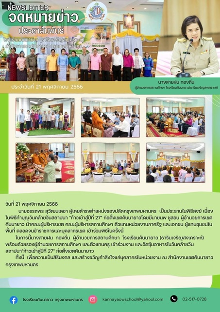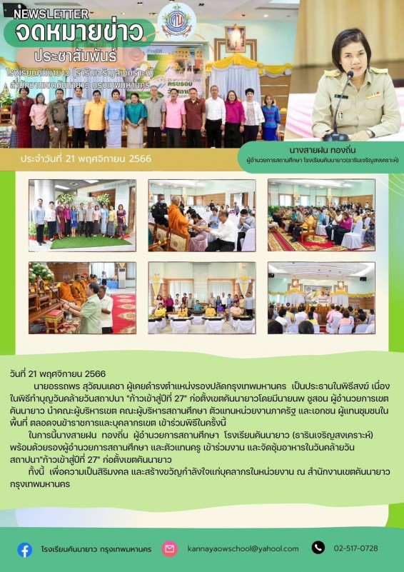 ในการนี้นางสายฝน ทองถิ่น ผู้อำนวยการสถานศึกษา โรงเรียนคันนายาว (ธารินเจริญสงเคราะห์) พร้อมด้วยรองผู้อำนวยการสถานศึกษา และตัวแทนครู เข้าร่วมงาน และจัดซุ้มอาหารในวันคล้ายวันสถาปนา"ก้าวเข้าสู่ปีที่ 27" ก่อตั้งเขตคันนายาว