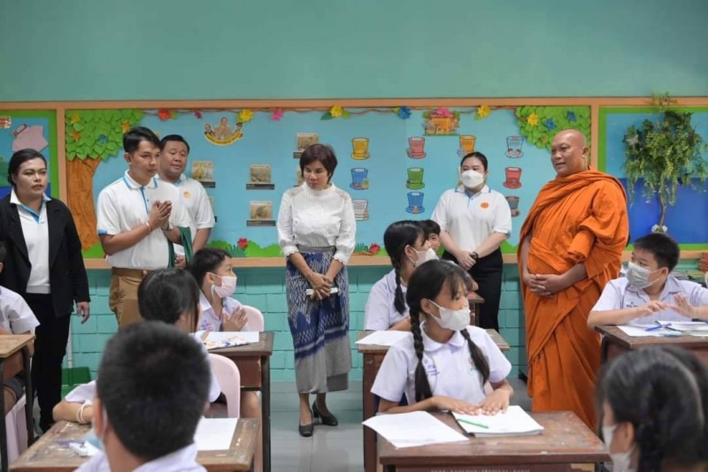 ในการนี้ ได้รับความเมตตาจาก พระครูอุดมจารุวรรณ ดร.เจ้าคณะเขตมีนบุรี เจ้าอาวาสวัดบำเพ็ญเหนือ มาให้กำลังใจนักเรียนที่เข้าสอบธรรมศึกษาทุกคน