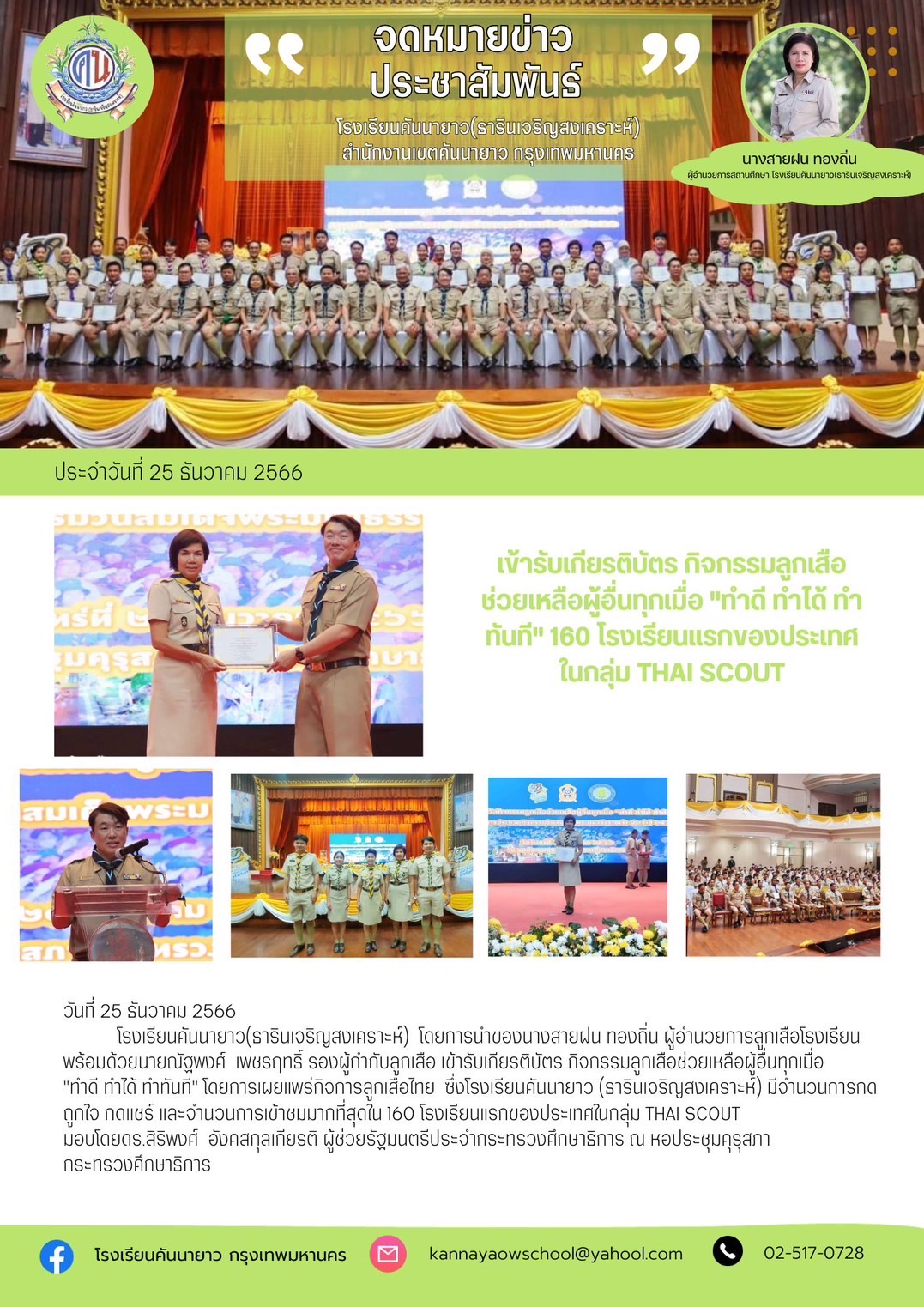 >>เข้ารับเกียรติบัตร กิจกรรมลูกเสือช่วยเหลือผู้อื่นทุกเมื่อ "ทำดี ทำได้ ทำทันที" 160 โรงเรียนแรกของประเทศในกลุ่ม THAI SCOUT