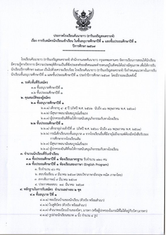 การับนักเรียนใหม่ ปีการศึกษา2567