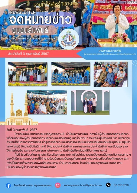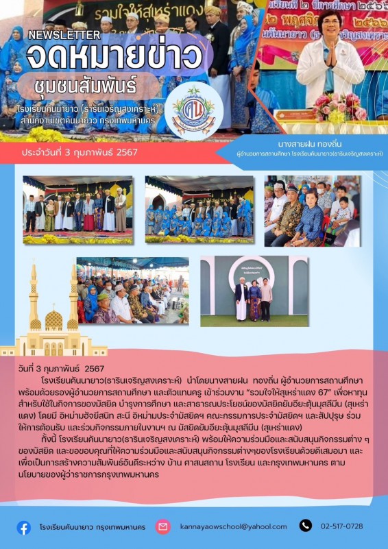 โรงเรียนคันนายาว(ธารินเจริญสงเคราะห์) นำโดยนางสายฝน ทองถิ่น ผู้อำนวยการสถานศึกษา พร้อมด้วยรองผู้อำนวยการสถานศึกษา และตัวแทนครู เข้าร่วมงาน “รวมใจให้สุเหร่าแดง 67” เพื่อหาทุนสำหรับใช้ในกิจการของมัสยิด บำรุงการศึกษา และสาธารณประโยชน์ของมัสยิดยัมอียะตุ้นมุสลีมีน (สุเหร่าแดง) โดยมี อิหม่ามฮัจยีสนิท สะนี อิหม่ามประจำมัสยิดฯ คณะกรรมการประจำมัสยิดฯ และสัปปุรุษ ร่วมให้การต้อนรับ และร่วมกิจกรรมภายในงานฯ ณ มัสยิดยัมอียะตุ้นมุสลีมีน (สุเหร่าแดง)