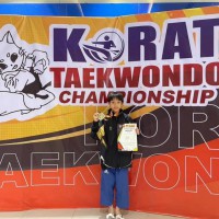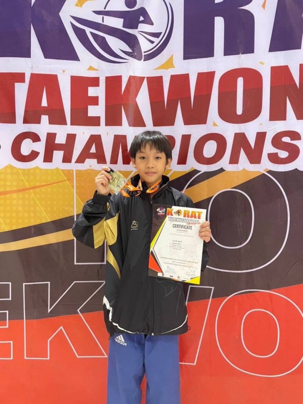 การแข่งขันเทควันโดประเภทท่ารำ ชาย พุมเซ่สายดำ รุ่นอายุ 13-14 ปี ได้รับรางวัลชนะเลิศ รับรางวัลเหรียญทอง พร้อมประกาศนียบัตร ได้รับถ้วยรางวัลนักกีฬายอดเยี่ยมชาย ระดับสายดำ