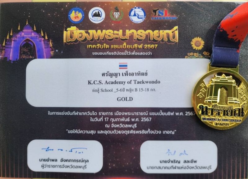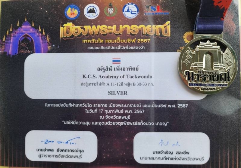 น้ำหนัก30-33 กิโลกรัม รับรางวัลเหรียญเงิน รับรางวัลเหรียญทองพร้อมประกาศนียบัตร