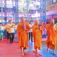 ในการนี้ได้รับความเมตตาจากพระครูอุดมจารุวรรณ ดร. เจ้าคณะเขตมีนบุรี เจ้าอาวาสวัดบำเพ็ญเหนือ มอบให้พระอาจารย์จากวัดบำเพ็ญเหนือ จำนวน 3 รูป นำสวดมนต์ และแสดงพระธรรมเทศนา
