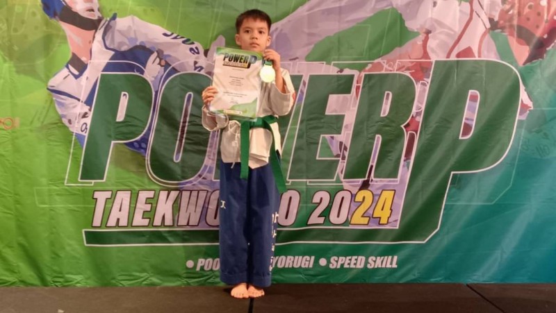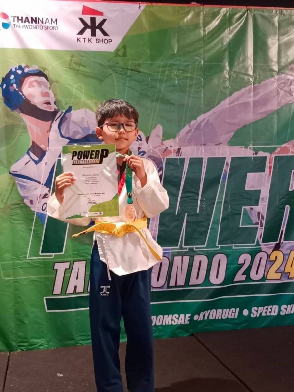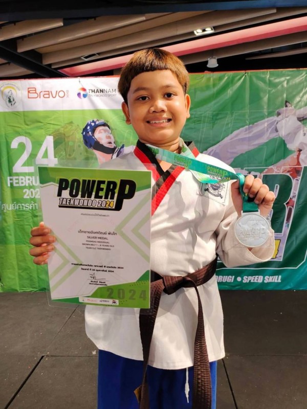 4.เด็กชายอัษศดิณย์ พันโท ได้รับรางวัลรองชนะเลิศอันดับ 1 การแข่งขันประเภทบุคคล ระดับสายน้ำตาล รุ่น อายุ 7-8 ปีชาย รับรางวัลเหรียญเงิน พร้อมประกาศนียบัตร