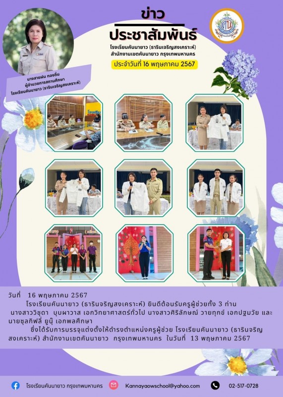 โรงเรียนคันนายาว (ธารินจริญสงเคราะห์) ยินดีต้อนรับครูผู้ช่วยทั้ง 3 ท่าน นางสาววิชุดา บุบผาวาส เอกวิทยาศาสตร์ทั่วไป นางสาวศิริลักษณ์ วายทุกข์ เอกปฐมวัย และนายซุลกิฟลี่ ยูนุ๊ เอกพลศึกษา