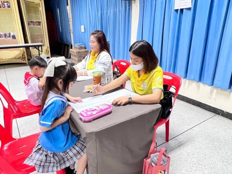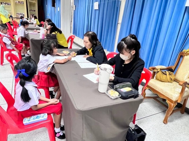 นางสายฝน เนาวนนท์ ผู้อำนวยการสถานศึกษา โรงเรียนคันนายาว(ธารินเจริญสงเคราะห์) พร้อมด้วยรองผู้อำนวยการสถานศึกษา คณะครู และบุคลากร ดำเนินการสอบคัดเลือกนักเรียน ระดับชั้นประถมศึกษาปีที่ 1 โครงการห้องเรียนสองภาษา English Program(EP) ประจำปี 2568 ณ โรงเรียนคันนายาว(ธารินเจริญสงเคราะห์)