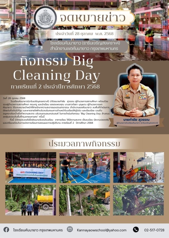 โรงเรียนคันนายาว(ธารินเจริญสงเคราะห์) นำโดยนายกำชัย สุวรรณ ผู้อำนวยการสถานศึกษา พร้อมด้วยรองผู้อำนวยการสถานศึกษา คณะครู และนักเรียน ขอขอบพระคุณ นางสาวกัลยา บุญแดง ผู้อำนวยการเขตคันนายาว ได้มอบหมายเจ้าหน้าที่ฝ่ายรักษาความสะอาดและสวนสาธารณะ สำนักงานเขตคันนายาว ลงพื้นที่ดำเนินการตัดแต่งกิ่งต้นไม้ที่สูง และพาดสายไฟฟ้าบริเวณริมถนนทางด้านหน้าโรงเรียนให้ดูโปร่ง และเรียบร้อย รวมถึงอนุเคราะห์รถน้ำเพื่อทำความสะอาด บริเวณลานอเนกประสงค์ ในการดำเนินกิจกรรม "Big Cleaning Day ล้างถนนลดฝุ่นละอองในพื้นที่กรุงเทพมหานคร" ครั้งนี้