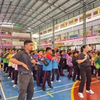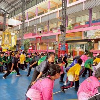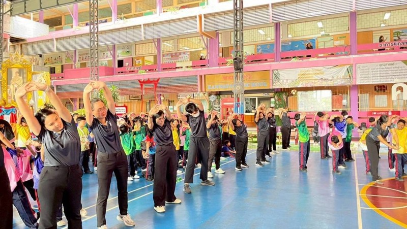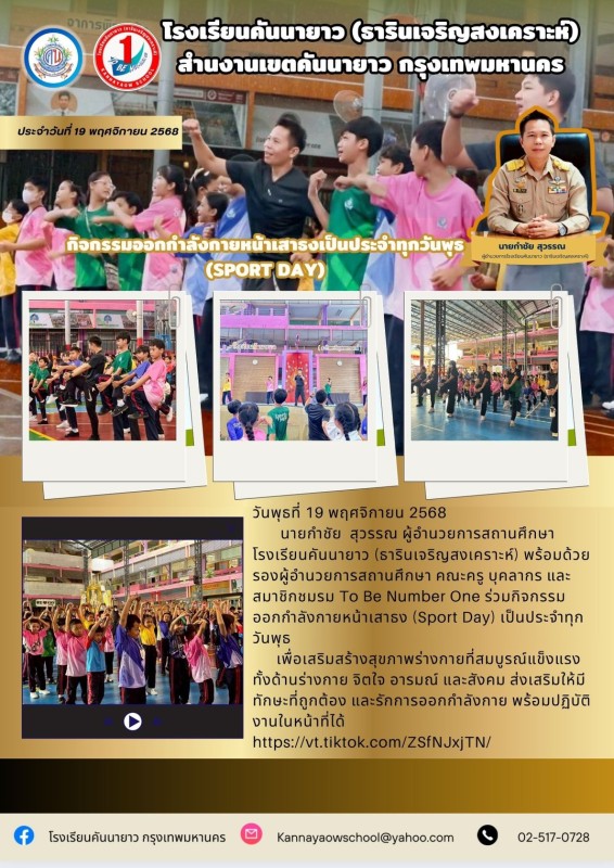 นายกำชัย สุวรรณ ผู้อำนวยการสถานศึกษา โรงเรียนคันนายาว (ธารินเจริญสงเคราะห์) พร้อมด้วยรองผู้อำนวยการสถานศึกษา คณะครู บุคลากร และสมาชิกชมรม To Be Number One ร่วมกิจกรรมออกกำลังกายหน้าเสาธง (Sport Day) เป็นประจำทุกวันพุธ