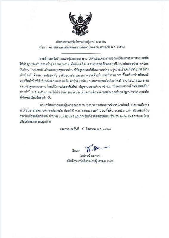 >> รางวัล "สถานศึกษาปลอดภัย" ระดับดีเด่น ประจำปี พ.ศ. 2568 (ปีที่ 2 ติดต่อกัน)