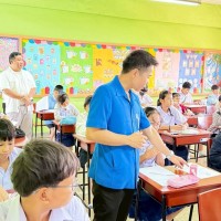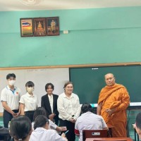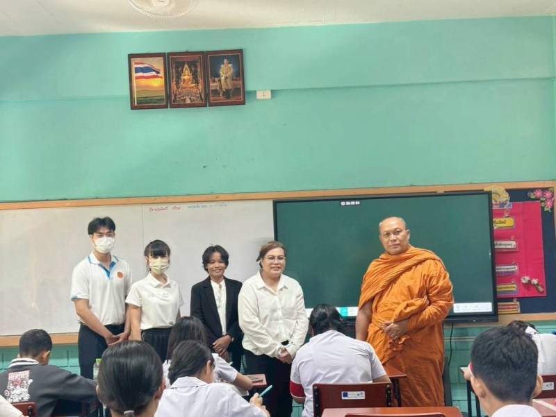 ในการนี้ ได้รับความเมตตาจาก พระครูอุดมจารุวรรณ ดร.เจ้าคณะเขตมีนบุรี เจ้าอาวาสวัดบำเพ็ญเหนือ มาให้กำลังใจนักเรียนที่เข้าสอบธรรมศึกษาทุกคน