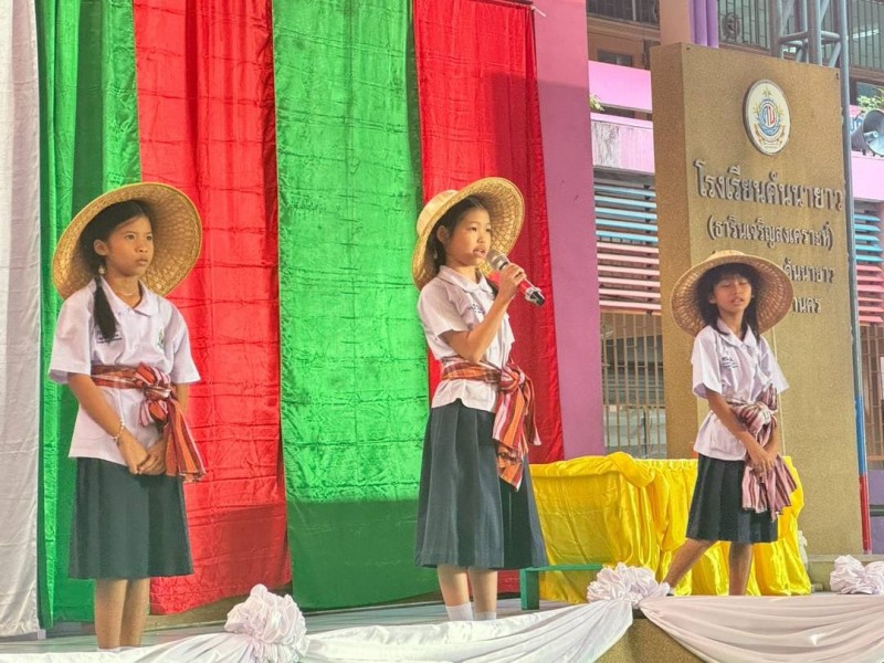 กิจกรรมครั้งนี้ นักเรียนได้บรรยายเกี่ยวกับ “ความรู้เกี่ยวกับอาชีพชาวนา” ในรายวิชาสังคมศึกษา ศาสนา และวัฒนธรรม รวมถึงการอนุรักษ์ศิลปวัฒนธรรมไทยผ่านการแสดงเต้นประกอบเพลง พร้อมยกตัวอย่างการแสดงที่เป็นเอกลักษณ์ของไทย ทำให้บรรยากาศหน้าเสาธงเต็มไปด้วยความรู้ ความสนุก