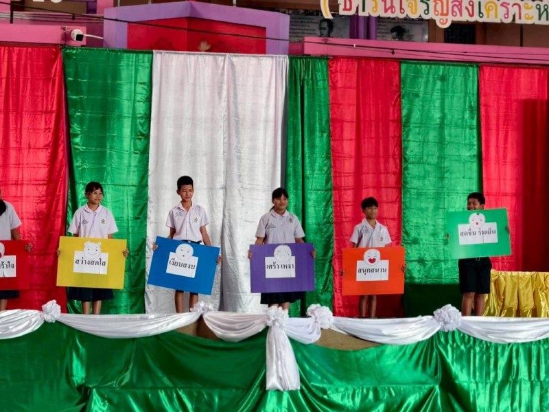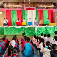 กิจกรรมบรรยายให้ความรู้หน้าเสาธงของตัวแทนนักเรียน นำเสนอความรู้ กลุ่มสาระการเรียนรู้ศิลปะ