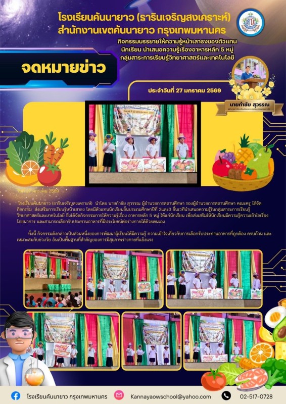 ทั้งนี้ กิจกรรมดังกล่าวเป็นส่วนหนึ่งของการพัฒนาผู้เรียนให้มีความรู้ ความเข้าใจเกี่ยวกับการเลือกรับประทานอาหารที่ถูกต้อง ครบถ้วน และเหมาะสมกับช่วงวัย อันเป็นพื้นฐานที่สำคัญของการมีสุขภาพร่างกายที่แข็งแรง
