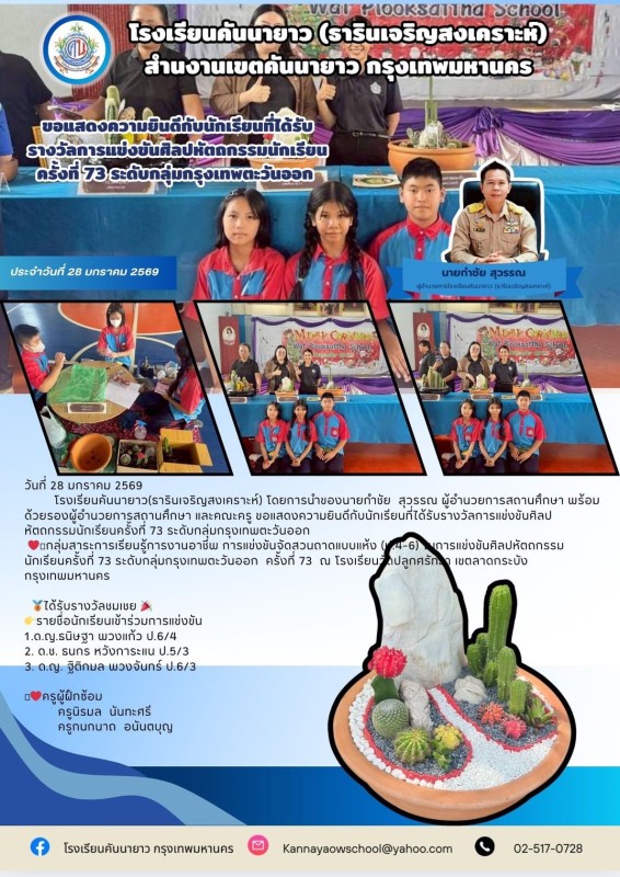 >> ขอแสดงความยินดีกับนักเรียนที่ได้รับรางวัลการแข่งขันศิลปหัตถกรรมนักเรียนครั้งที่ 73 ระดับกลุ่มกรุงเทพตะวันออก
