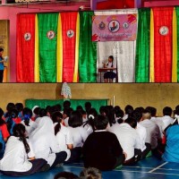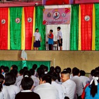 >> กิจกรรมบรรยายให้ความรู้หน้าเสาธงของตัวแทนนักเรียน นำเสนอความรู้เรื่องการบลูลี่ผ่านสื่อออนไลน์