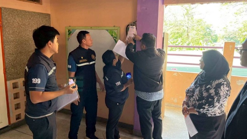 สำนักป้องกันและบรรเทาสาธารณภัยในการลงพื้นที่ตรวจสอบทรัพยากรด้านความปลอดภัยของสถานศึกษาในพื้นที่เขตคันนายาว