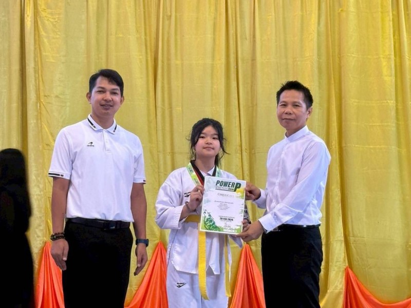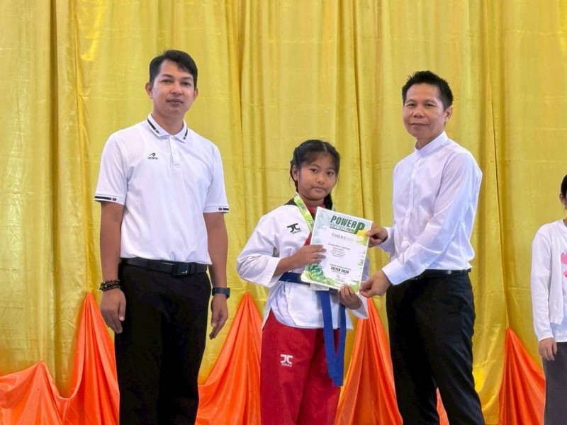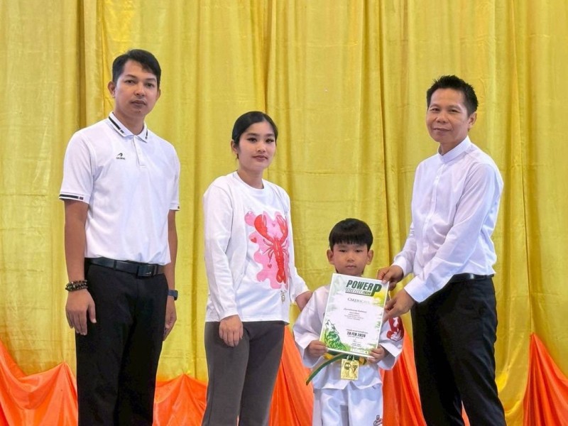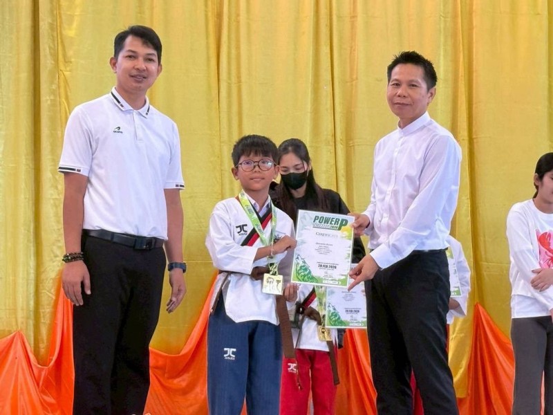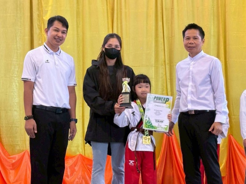 มอบเกียรติบัตร พร้อมถ้วยรางวัล ให้แก่นักเรียนที่ได้รับรางวัลการแข่งขัน รายการแข่งขัน POWER P TAEKWONDO CHAMPIONSHIP 2026