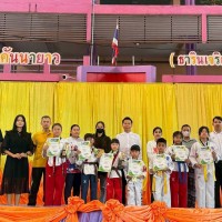 ในการนี้ นายกำชัย สุวรรณ ผู้อำนวยการสถานศึกษาได้ทำการมอบเกียรติบัตร พร้อมถ้วยรางวัล ให้แก่นักเรียนที่ได้รับรางวัลการแข่งขัน รายการ POWER P TAEKWONDO CHAMPIONSHIP 2026 ณ ศูนย์การค้า BRAVO BKK กรุงเทพมหานคร