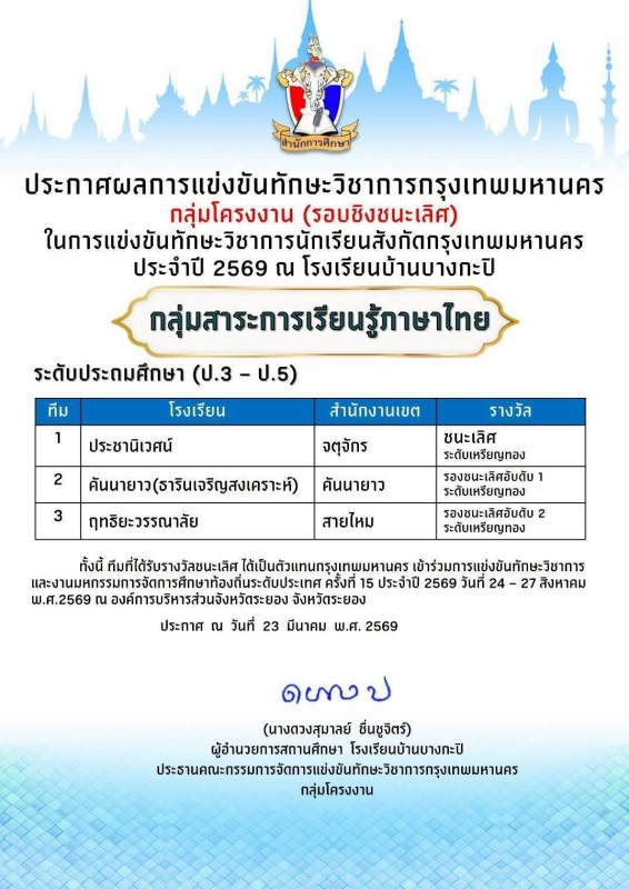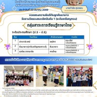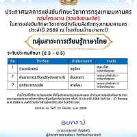 >> ขอแสดงความยินดีกับลูกคันนายาว รับรางวัลรองชนะเลิศอันดับ 1 (ระดับเหรียญทอง) การแข่งขันโครงงานทักษะวิชาการกรุงเทพมหานคร ปี พ.ศ.2569 (รอบชิงชนะเลิศ)