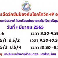 ขอแจ้ง ประชาสัมพันธ์ กำหนดการฉีดวัคซีน ป้องกันโรคโควิด-19 นักเรียน อายุ5-11ปี