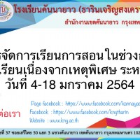 การจัดการเรียนการสอน ช่วงการปิดเรียนเนื่องจากเหตุพิเศษ ระหว่างวันที่ 4-18 มกราคม 2564