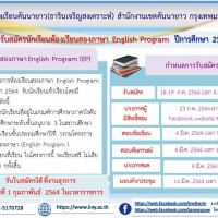 การรับนักเรียนใหม่ ประจำปีการศึกษา 2564 ห้องเรียนสองภาษา