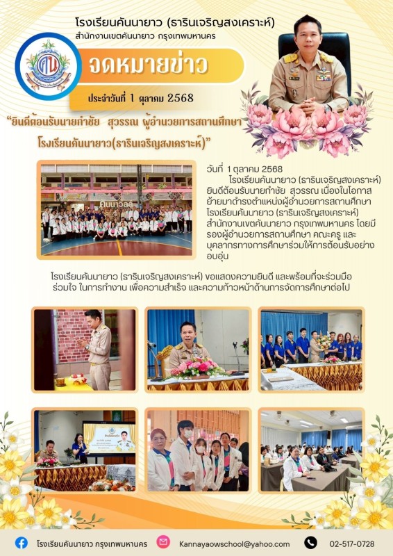 ยินดีต้อนรับนายกำชัย สุวรรณ ผู้อำนวยการสถานศึกษาโรงเรียนคันนายาว(ธารินเจริญสงเคราะห์) วันที่ 1 ตุลาคม 2568